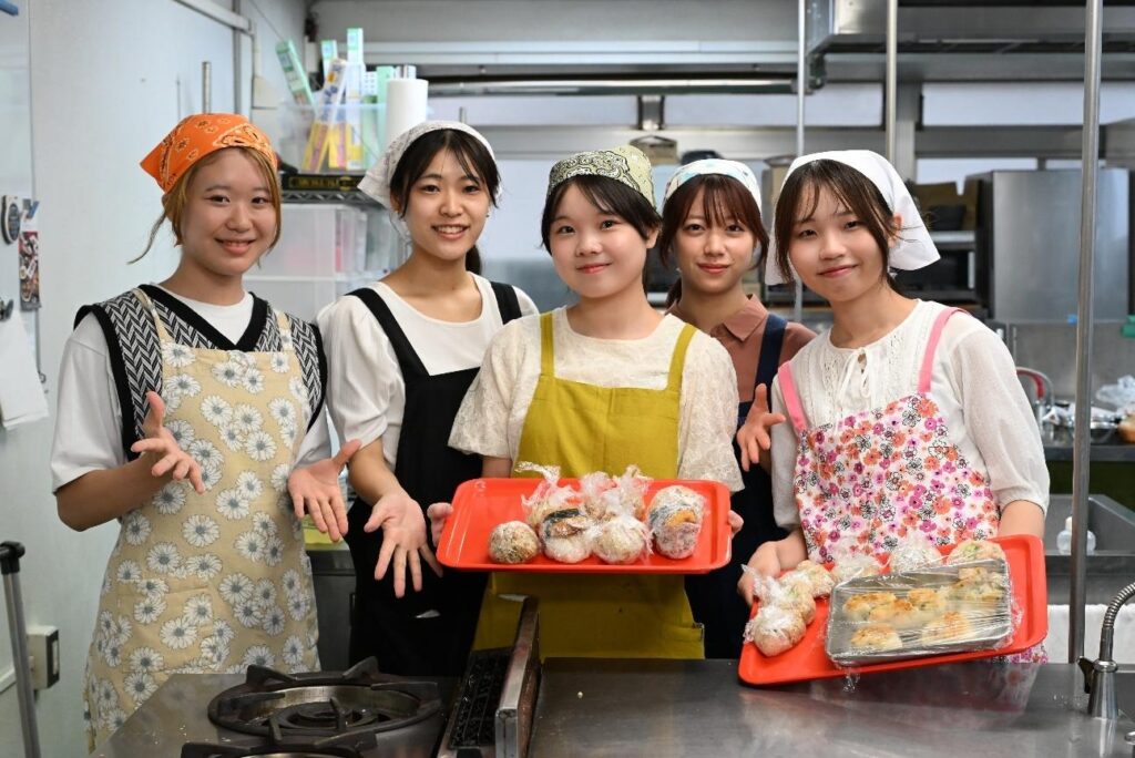 本学からは、食生活科学科や文学部など異なる学部・キャンパスの8名がチームを組み、「食を通じて人と世界をつなぐ」をテーマにオリジナルおにぎりの開発に挑戦しました。