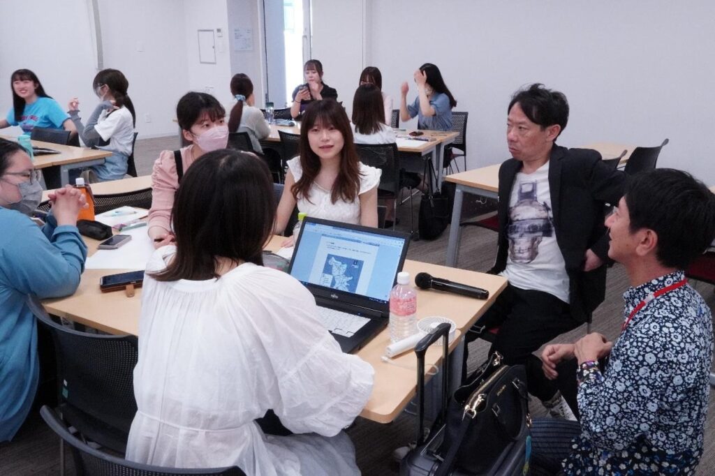 そんな中で、いちばん大きなターニングポイントになったのが、2年生のときに受講した深澤先生の「実践プロジェクトC」という授業です。株式会社テレビ東京とのコラボ授業で、この授業の中で商店街の地域活性化プロジェクトを立ち上げました。後継者不足に悩んでいる商店街を舞台に、いろんなアイデアを考えていきました。最初は「若者向けイベントをやれば人が来る」という、かなり広いアイデアから始まりました。たとえば、SNS映えを狙った企画や、商店街を使ったミニライブ案などです。しかし議論を重ねる中で、「商店街にいない世代にどう響かせるか」というテーマにフォーカスが移っていきました。そして最終的には、「伝統産業×世界的人気キャラクター×地域通貨」というアイデアの組み合わせにたどり着きました。
